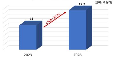 전 세계 조력 발전 시장 규모는 2023년 기준 약 11억 달러 규모이며, 연평균 성장률 10%로 성장하여 2028년에는 약17.7억 달러의 시장 규모를 형성할 것으로 전망됨