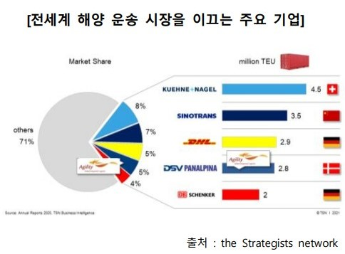 해양 운송 시장을 이끄는 주요 기업에는 Kuehne + Nagel, DHL Group, DB Schenker Logistics, GEODIS 및 Panalpina가 있(출처 : globenewswire)
